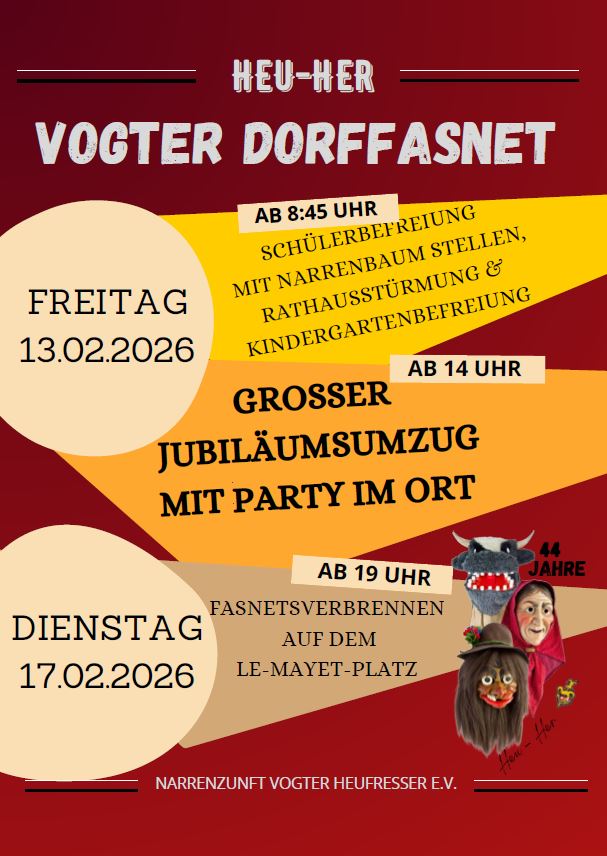 Herzlich Willkommen auf der Homepage der Narrenzunft Vogter Heufresser e.V.